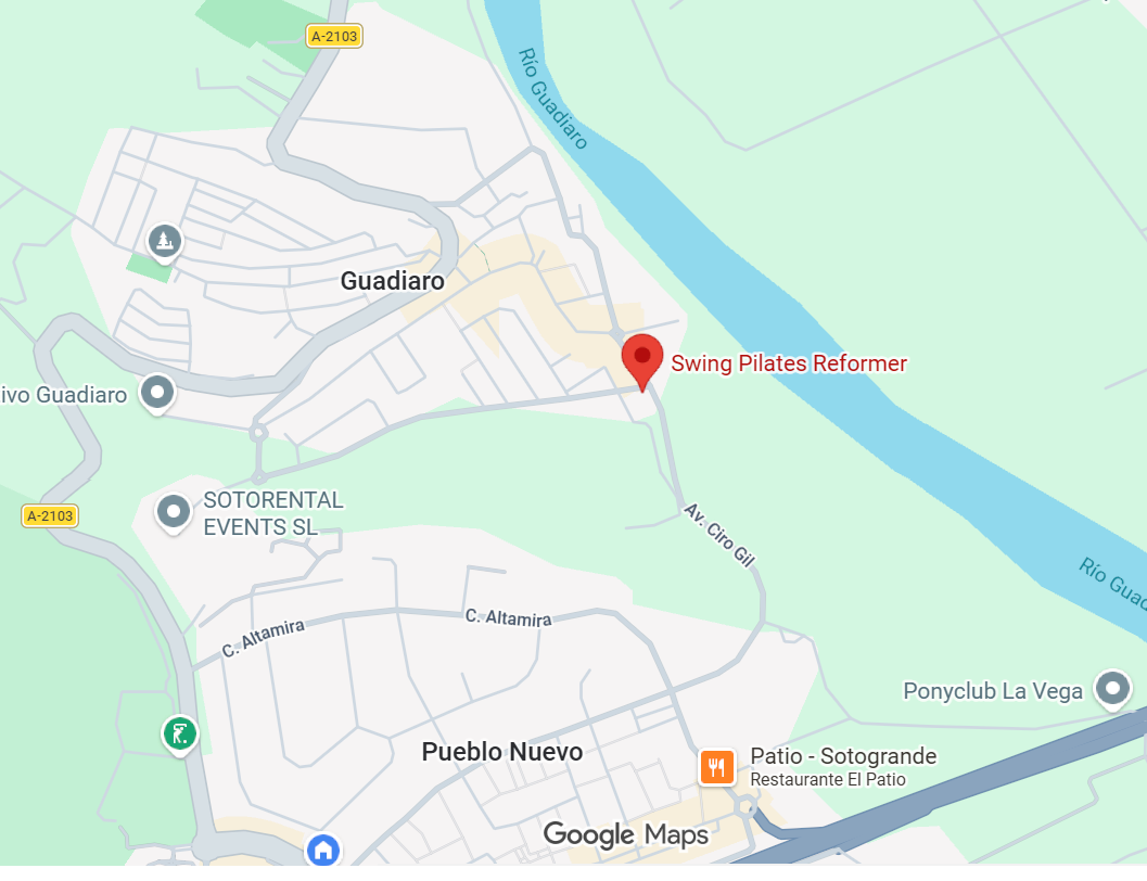 Swing Pilates Reformer is a Pilates studio based in Guadiaro, Sotogrande, specialized in dynamic Swing Reformer classes that combine traditional reformer technique with flowing controlled movements.